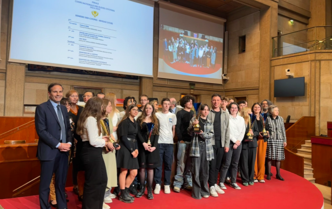 600 collégiens et lycéens venus toutes les régions académiques de France, finalistes de la Coupe nationale des élèves citoyens lancée par InitiaDROIT, en partenariat avec les ministères de la Justice et de l’Éducation nationale, ont débattu sur le thème "Le droit au service de la paix".